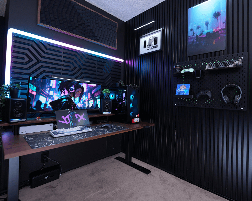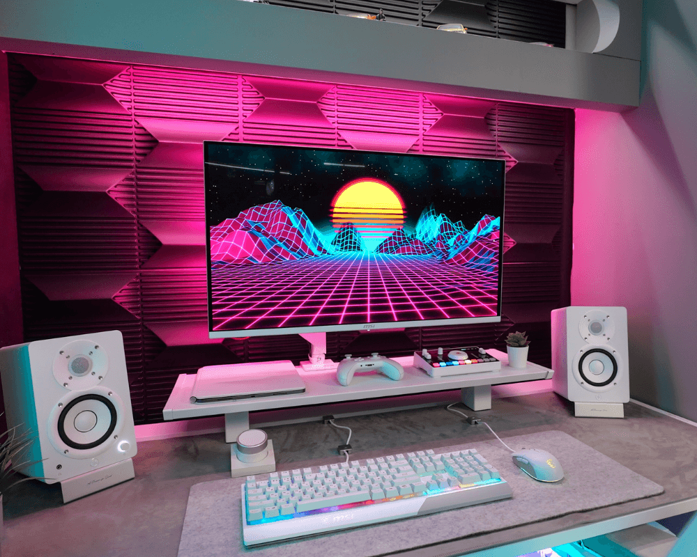 The inspiration to build Cyberpunk inspired gaming den came from using high end next gen tech and sticking to the synthwave color scheme. The MSI PC components have helped bring this vision to life by allowing the PC to fit naturally in the space and complement the colors with its RGB lighting and powerful PC components.