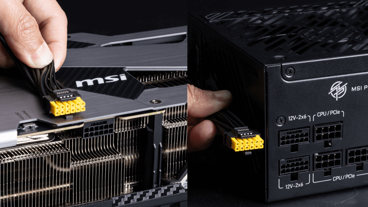 The 12V-2x6 cable’s connector color has been changed to yellow so that users can easily see if the connector has been plugged in properly.