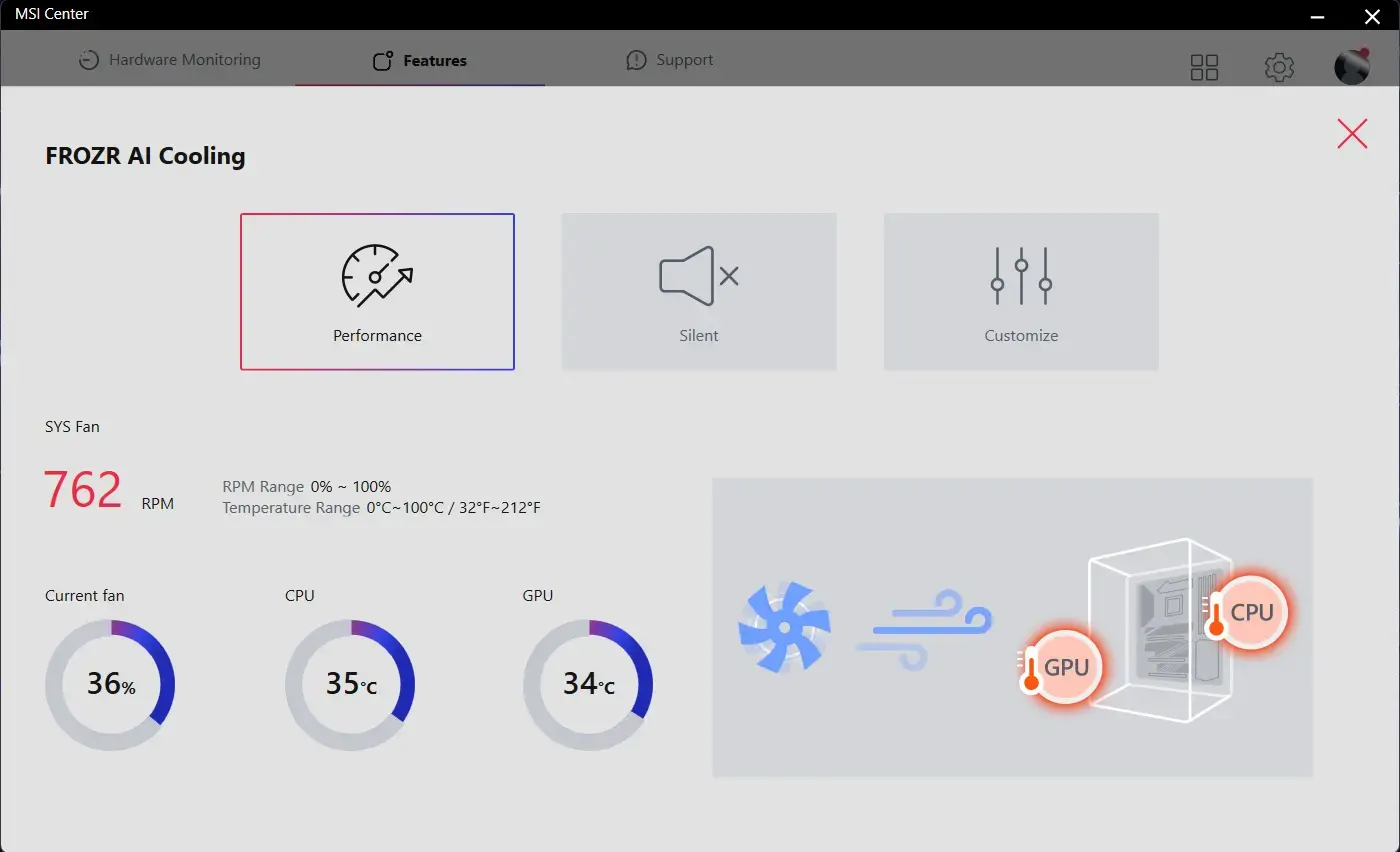 The AI system detects CPU and GPU temperatures and automatically adjusts the fan duty of system fans to ensure optimal performance.