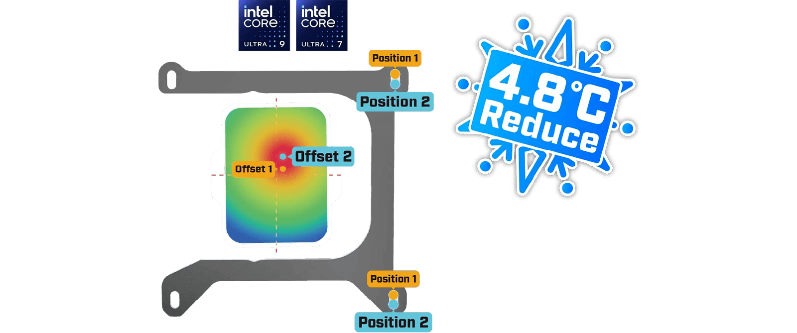 The adjustable offset kit provides 2 positions and allows for precise adjustment of position of CPU, ensuring optimal alignment and significantly improving the cooling effect.