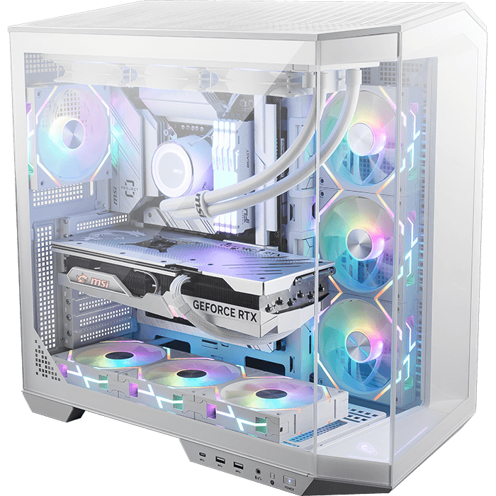 A bold fusion of performance and style. The MPG series is made for gamers who want both powerful specs and unique personality, featuring vibe lighting and sleek design. This setup looks just as fascinating as it plays.