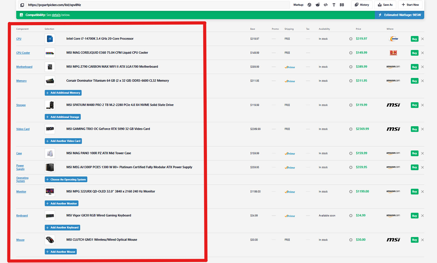 Your own custom MSI Ultimate Gaming PC Build (up to $6000 USD) Submit a PCPartPicker build list of up to $6000 through Gleam for a chance to win this prize.