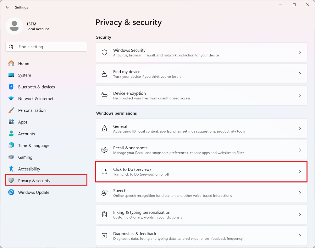 1. Go to Settings > Privacy & security > Click to Do.