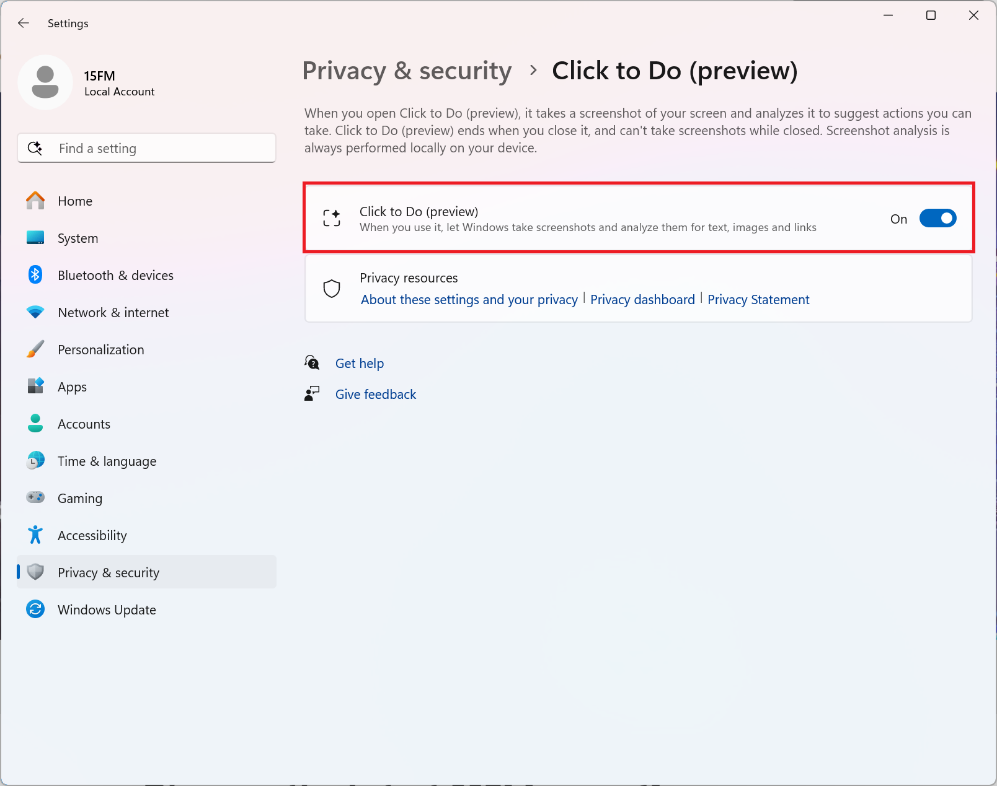 Click to Do is enabled by default after updating to OS Build 26100.4061(KB5058411).
