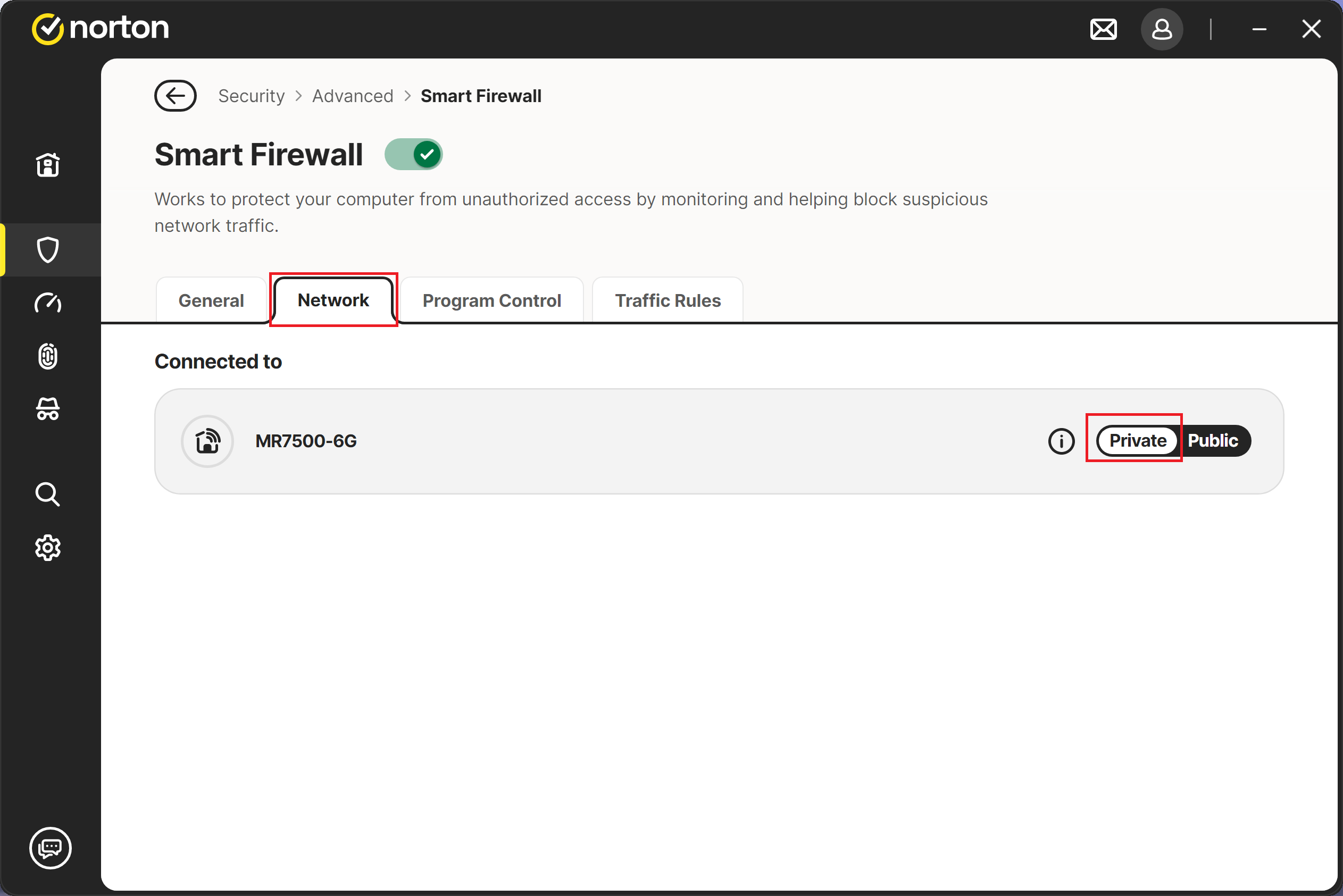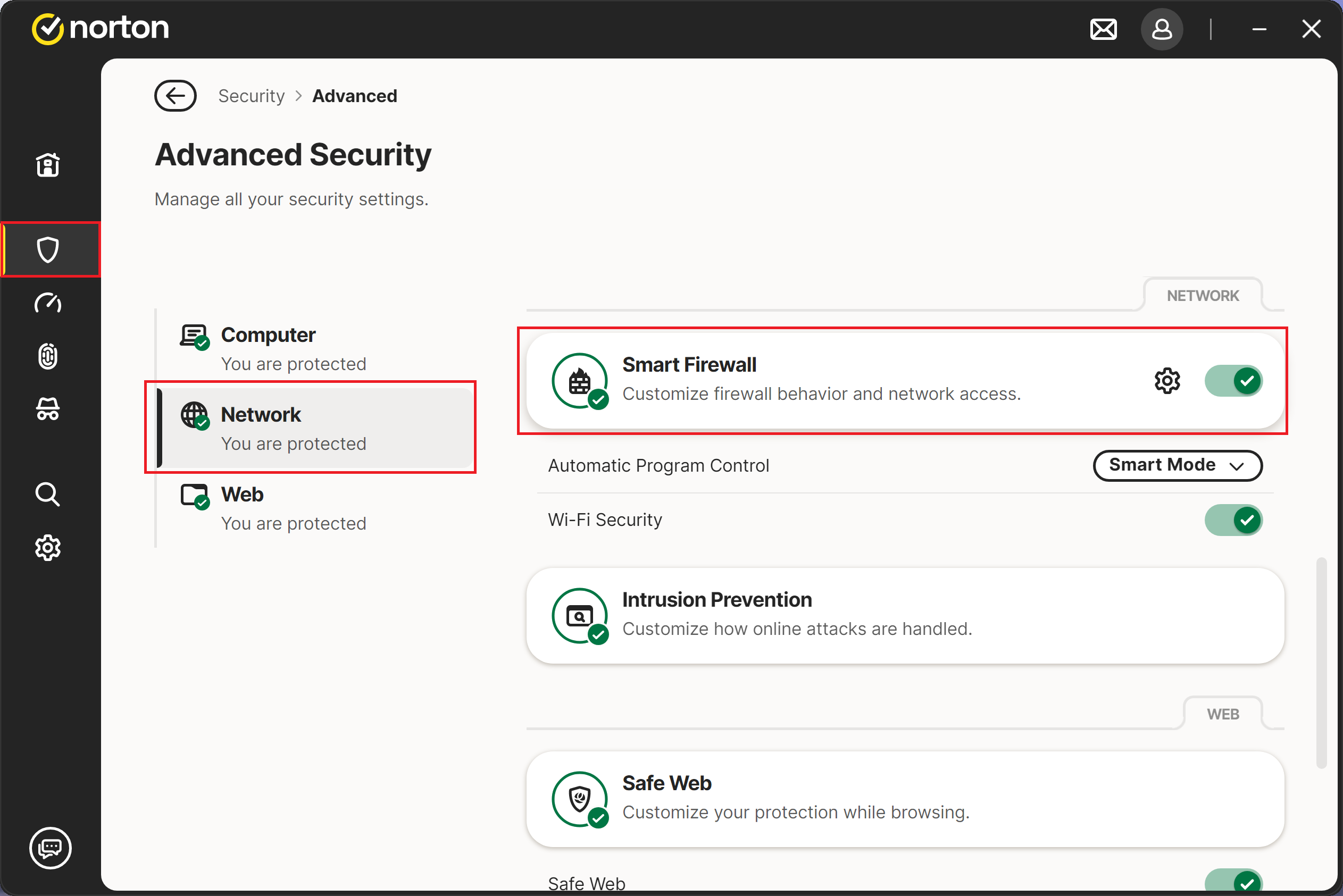 Follow the steps below to change the network type in Norton: