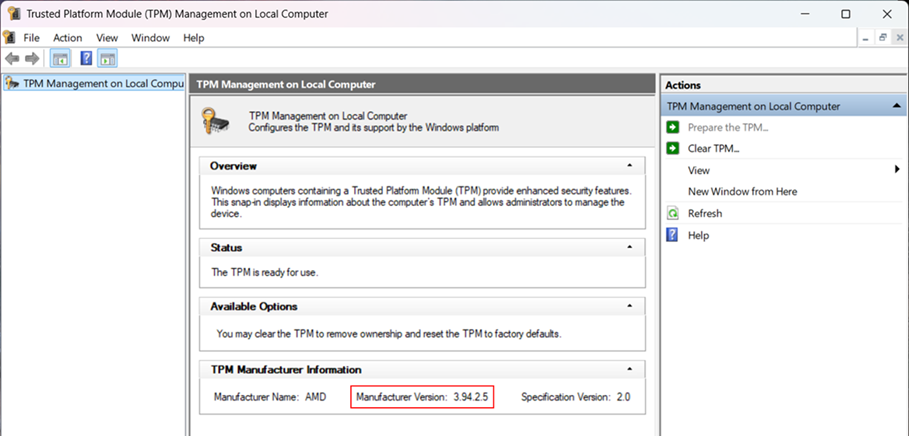 2. Check the Manufacturer Version to verify the current TPM version.